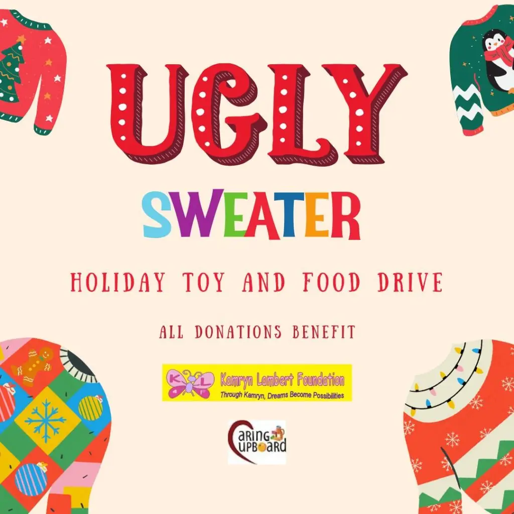 Grab your ugliest sweater and join us for a night of festive fun and community giving! We’re celebrating the season with great food, drinks, prizes, and a chance to give back. Bring an unwrapped toy or canned good to donate.